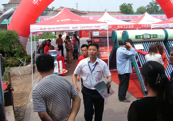 自6月1日起,雙能山西大區經理就帶同業務員前往屯留縣,與當地經銷商進行溝通,敲定活動策劃方案,可行度極高的方案贏得了經銷商的極大認可,并于6月2日開始了前期的宣傳預熱。炎炎夏日,抵擋不住雙能人前進的步伐,雙能經銷商組織了廣告服務車深入屯留縣的各個鄉鎮、村莊,在各地掛條幅、貼海報、發傳單,前期宣傳的到位是活動取得成功的關鍵因素。