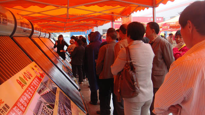 活動當天,海安縣人民齊聚在雙能新工業(yè)園中心廣場,在這十年一遇的良好時機中選購心儀的雙能產(chǎn)品。廣場上人聲鼎沸、人頭攢動,一派熱鬧的景象吸引了眾多馬路上的行人入場購機。良好的產(chǎn)品質(zhì)量、可靠的售后服務(wù)、精彩的現(xiàn)場演示、工作人員耐心細致的講解,都激發(fā)了現(xiàn)場用戶購買雙能產(chǎn)品的熱情,最終成功售機近千臺。其中雙能2012年的主打系列智動▪鋒范系列占了約70%的比例,智動波太陽能也獲得了很多老百姓的認可與贊賞,現(xiàn)場紛紛訂購。