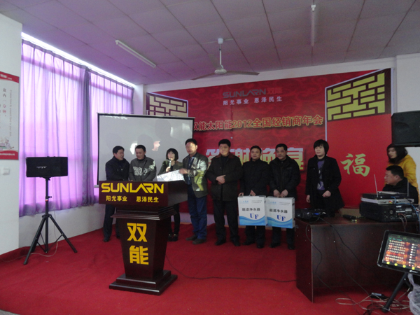 2月4日,雙能太陽能在公司酒店召開2012年度員工表彰大會,旨在對辛苦勞作在各條戰線的員工進行褒獎與犒勞。公司高管、市場銷售人員、行政辦公人員及生產一線的工人參加了會議。